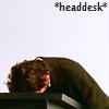 Description: Geoffrey with his head resting on a podium, with text saying "headdesk"